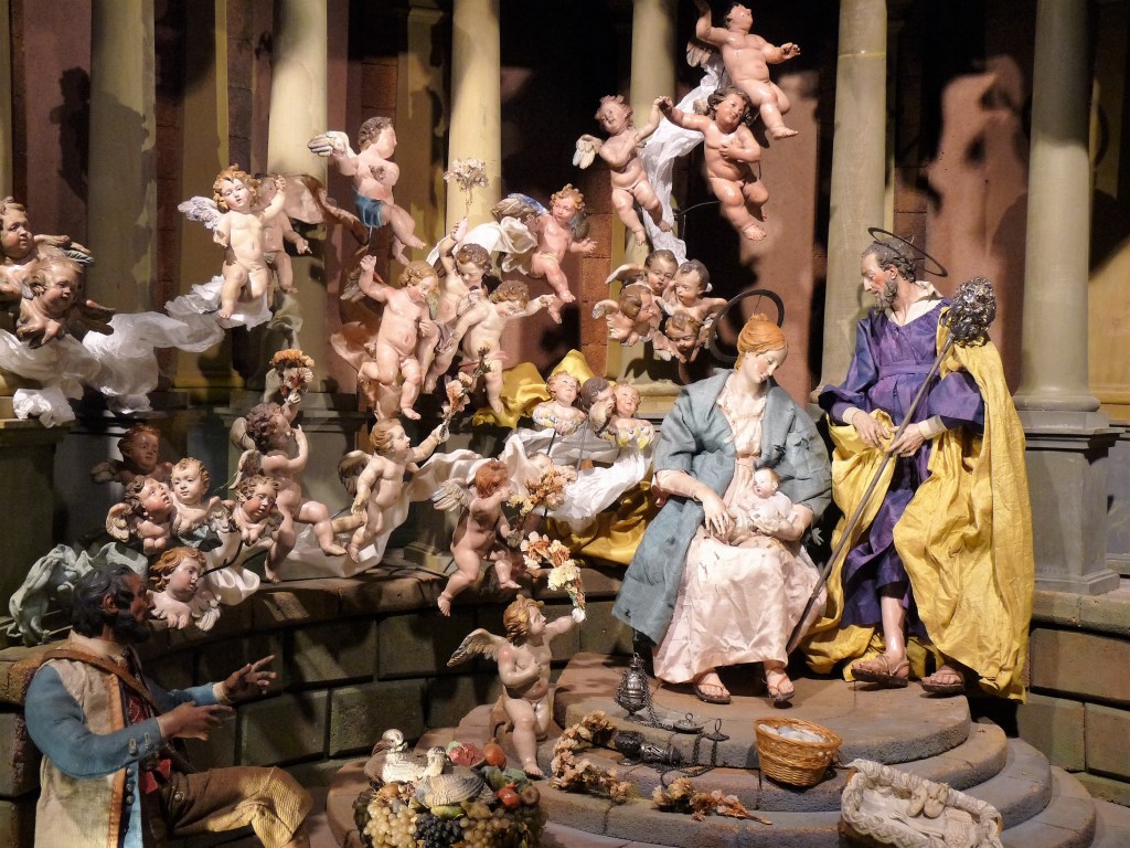 Trois cents sont des figures humaines ou animales, accompagnées de tous les détails du scénario urbain d’une rue de Naples : étals de nourriture, boutiques d’artisans, taverne de marché, mendiants ou cortège d’un personnage de cour. Certaines pièces proviennent de la collection de Carlos III, d’autres, comme un saisissant aveugle en haillons, sont de véritables chefs d’œuvre d’expression et de finesse. De la fange urbaine aux anges exaltés, la magnificence du baroque. Lire la suite